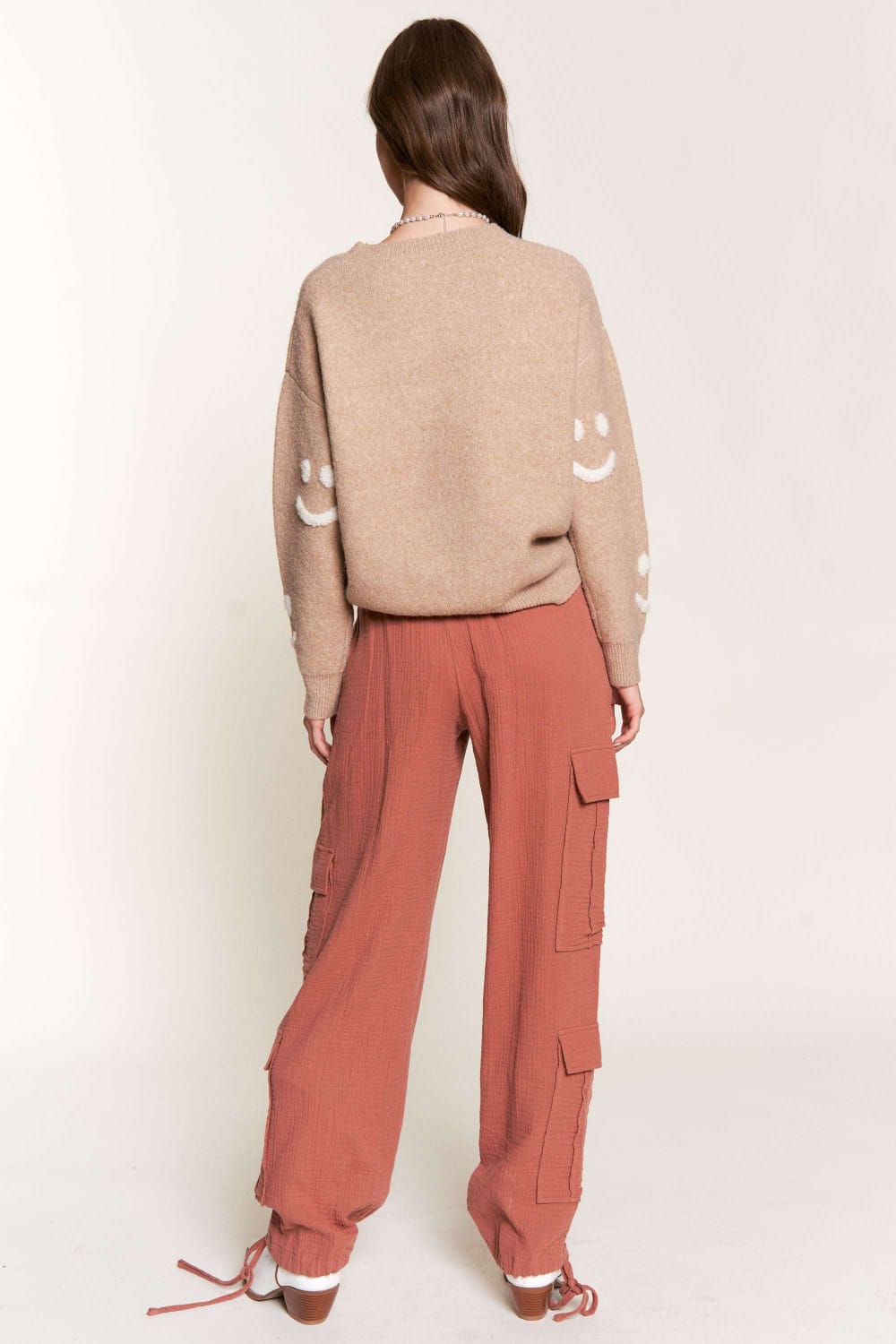TERRACOTTA LINEN WIDE LEG CARGO PANTS P9334
