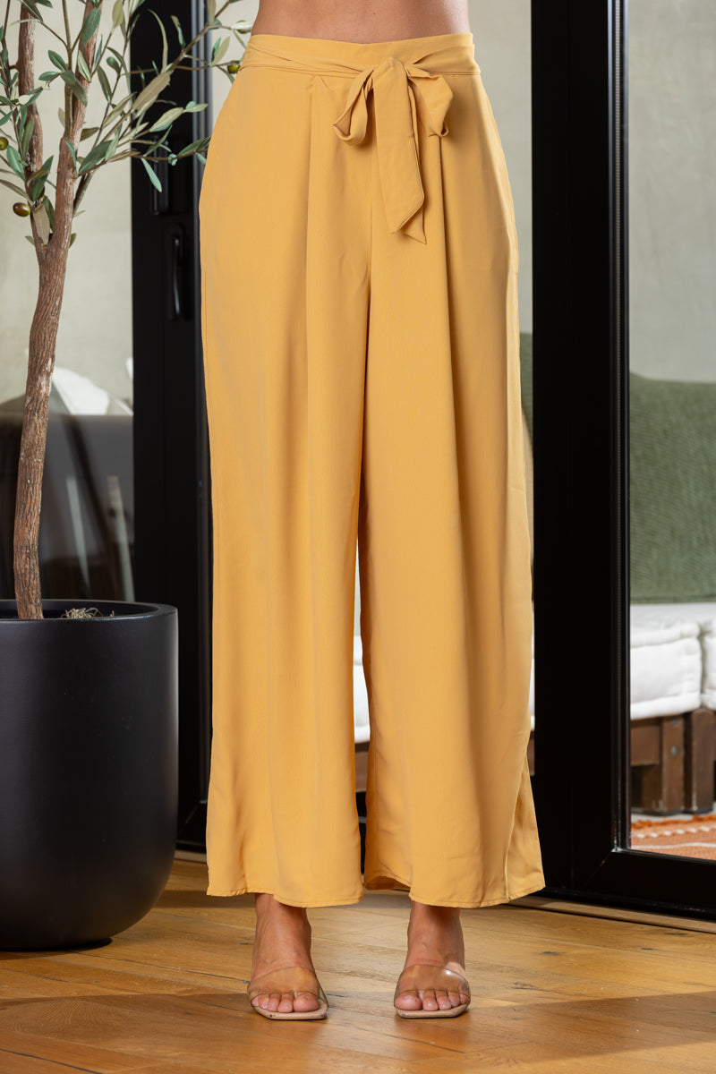 MUSTARD HIGH WAISTED TIE KNOT WIDE LEG PANTS BL60014