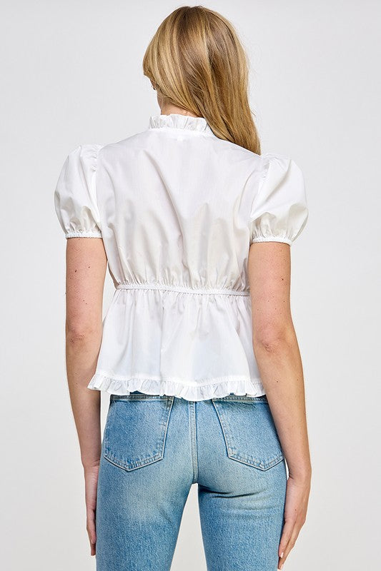 IVORY/BLACK PLAID PRINT W/ SHIRRING DETAILED TOP