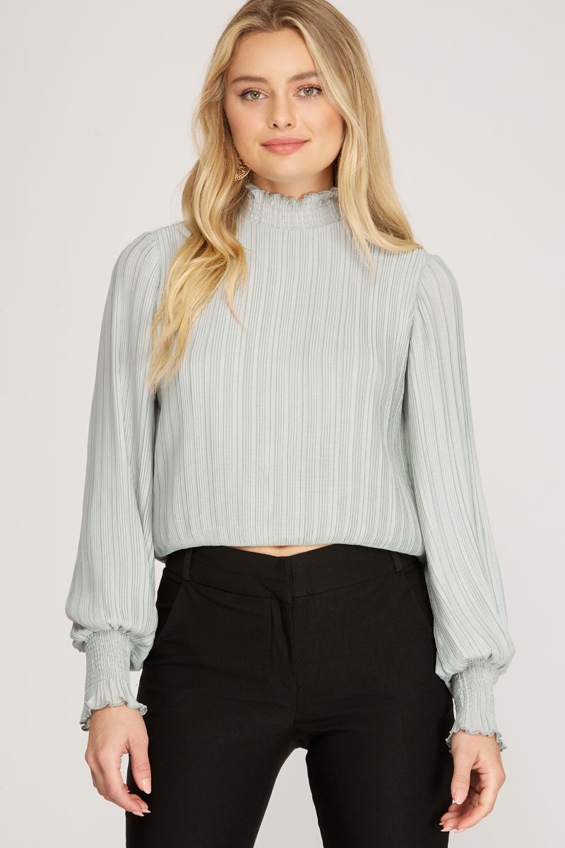SEAFOM PLEATED SMOCKED MOCK NECK TOP