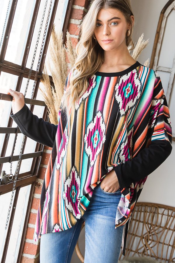 AZTECH PRINT LONG SLEEVES ROUND HEM TOP