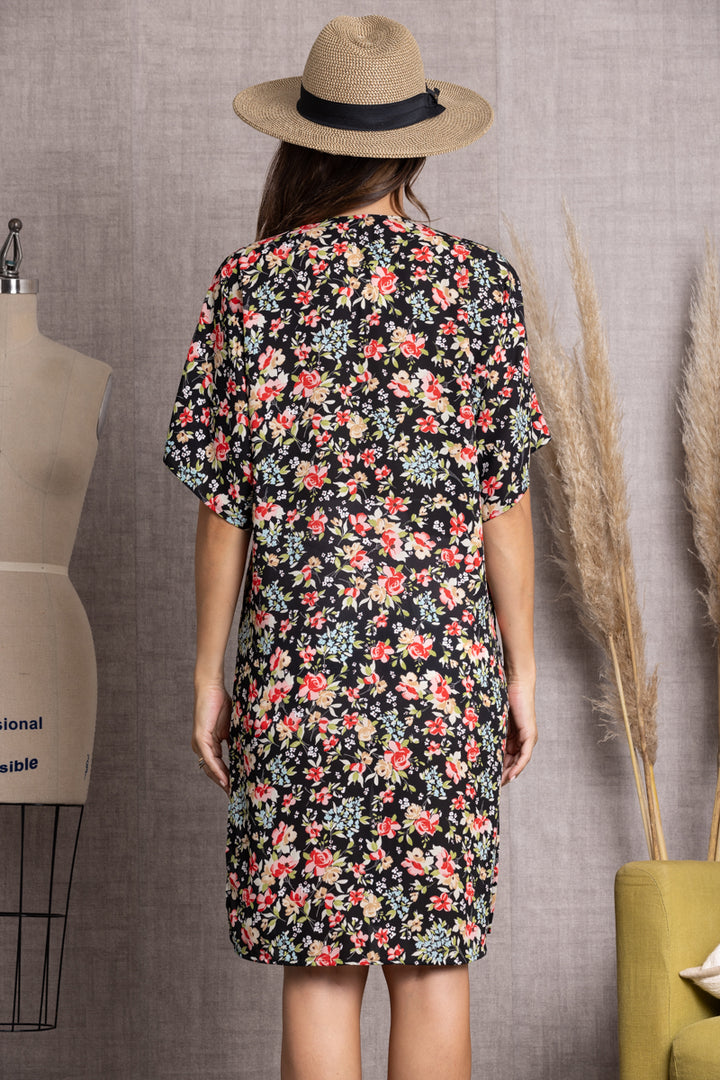 BLACK FLORAL PRINT W/SIDE SLITS CARDIGAN SC12105