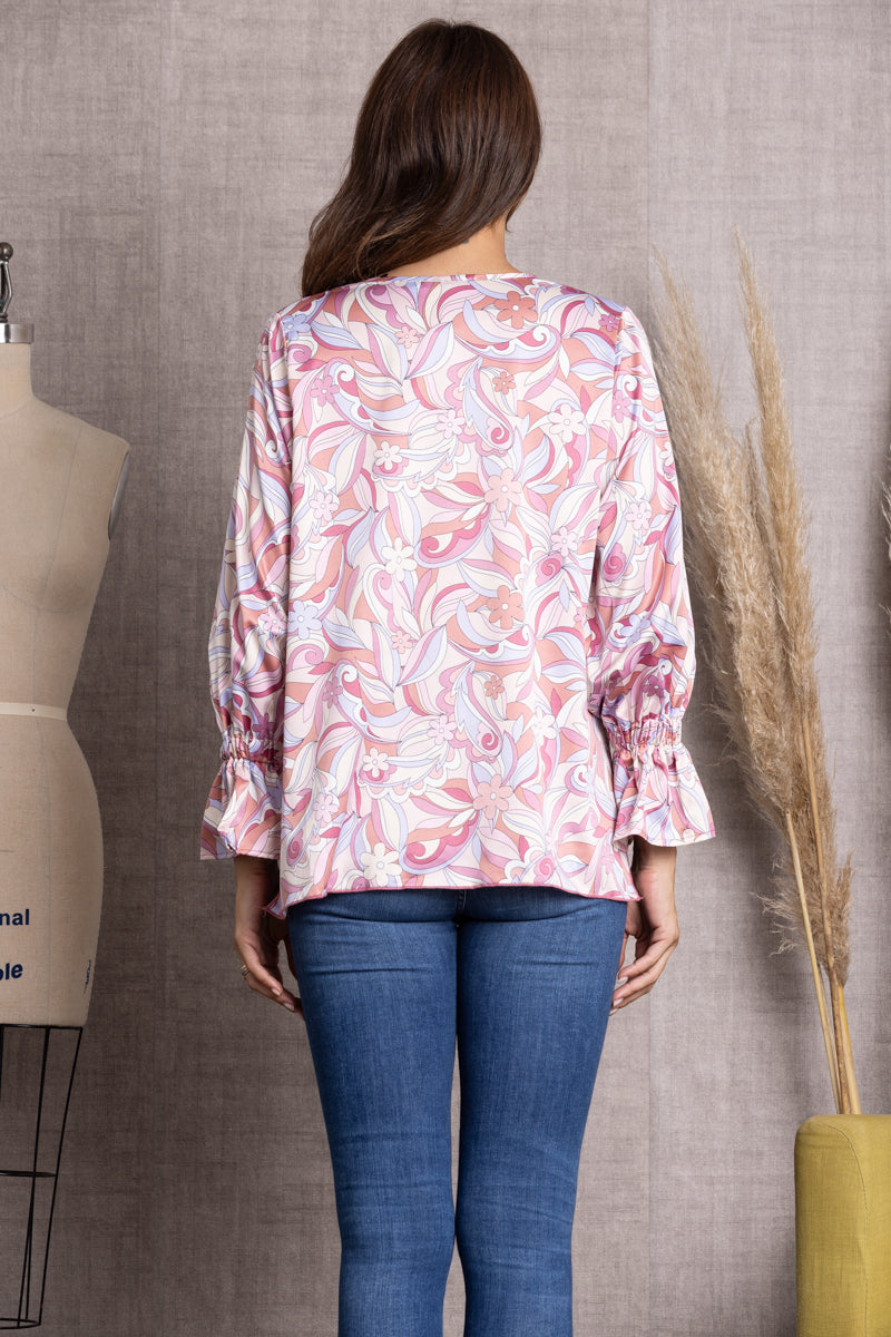 Be bold and beautiful in our ST11922-BLUSH PRINTED V-NECK CUFF LONG BALLOON SLEEVE TOP. This stylish top is perfect for any occasion and exudes confidence and sophistication. With its romantic blush print and flattering long balloon sleeves, you'll be sure to make an unforgettable statement. So, why not make the look your own and stand out?