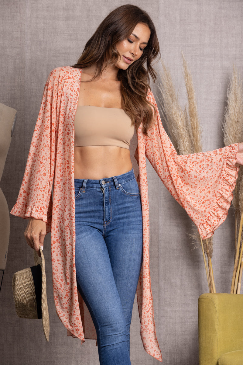 RED PLAID OPEN FRONT LONG CARDIGAN FSLSJ1001