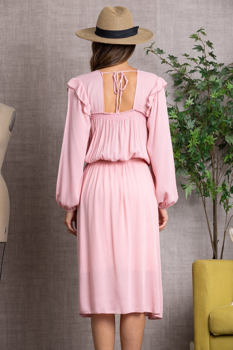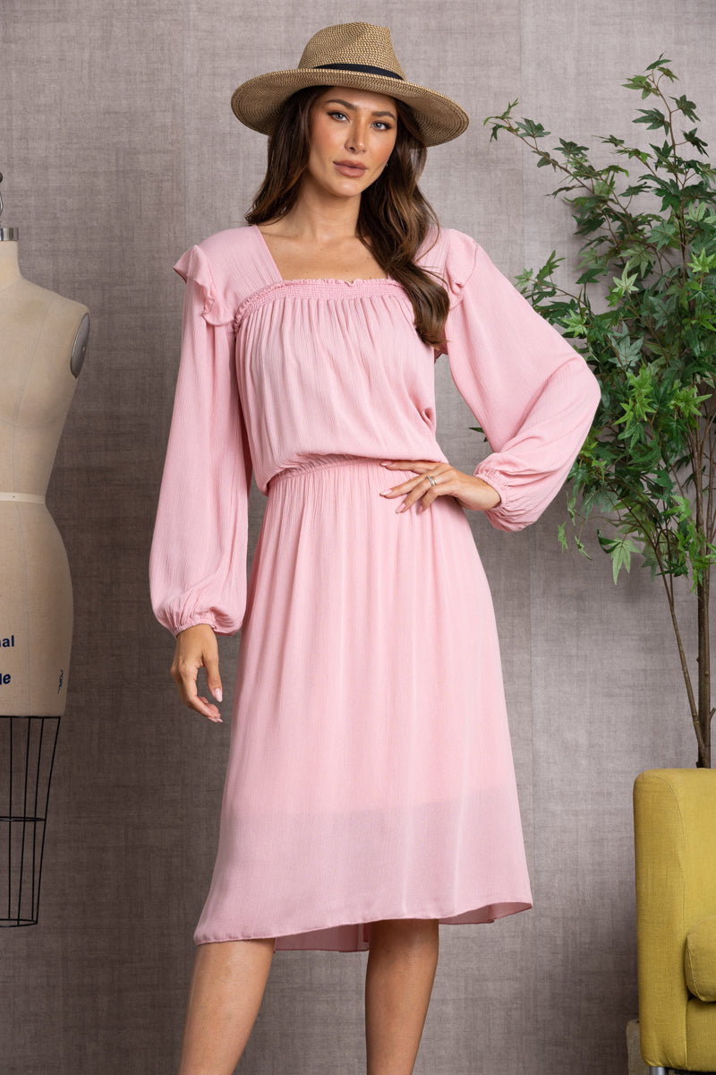 MAUVE SQUARE NECKLINE BISHOP SLEEVES MIDI DRESS-LD3824