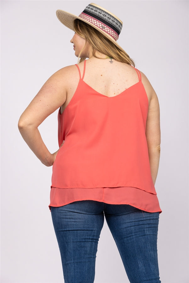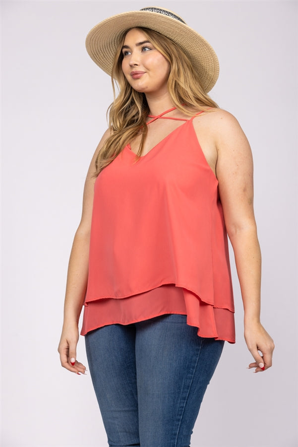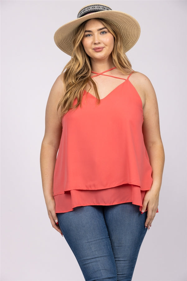 Be a "fashion-forward" trendsetter in our Coral Chiffon Crisscross Back Plus Size Top! The stunning coral color and unique crisscross back will have you feeling confident and stylish. Made with lightweight chiffon, it's perfect for any season. (Size-inclusive and fashionista approved!)
