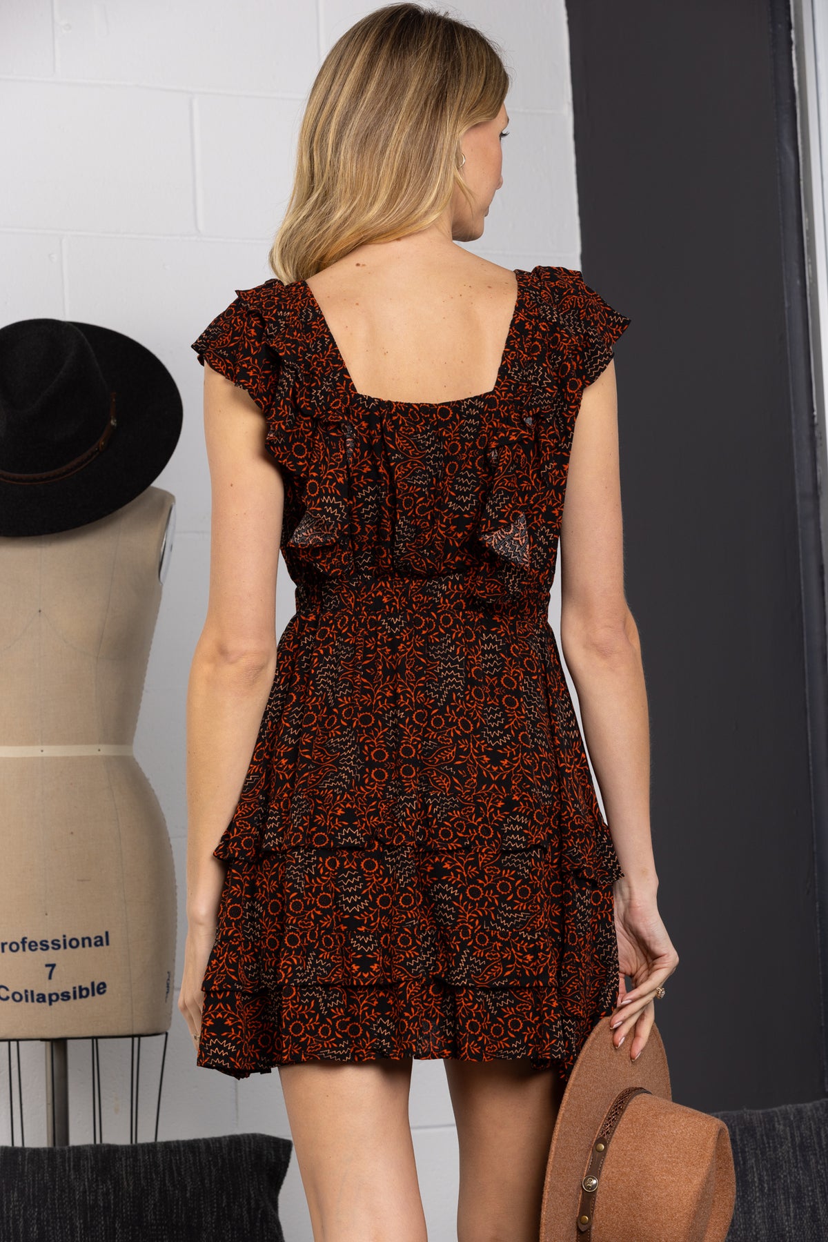 BLACK FLORAL V-NECK RUFFLED MINI DRESSD9113P