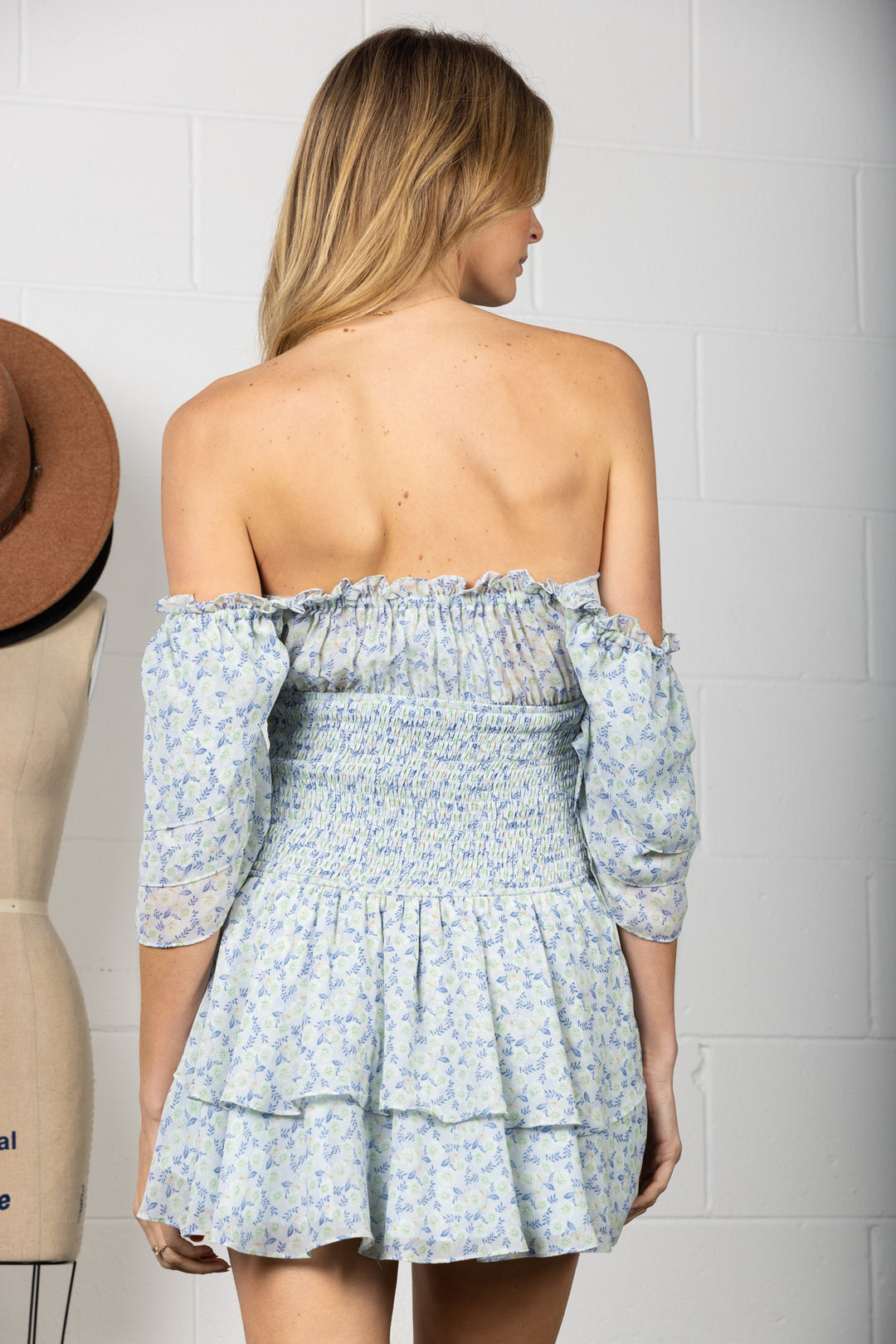 Make a statement in this BLUE tiered off shoulder layered mini dress! The vibrant blue color and off shoulder design add a touch of femininity, while the layered tiers create a playful and flattering silhouette. Elevate your style and confidence with this stunning dress.
