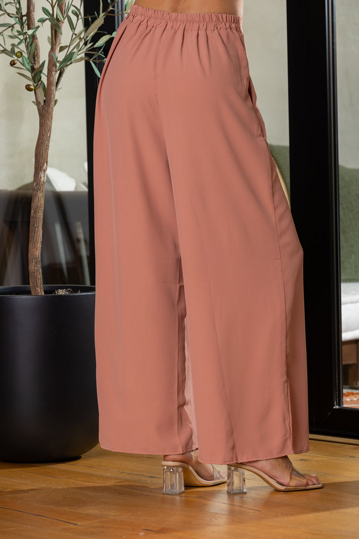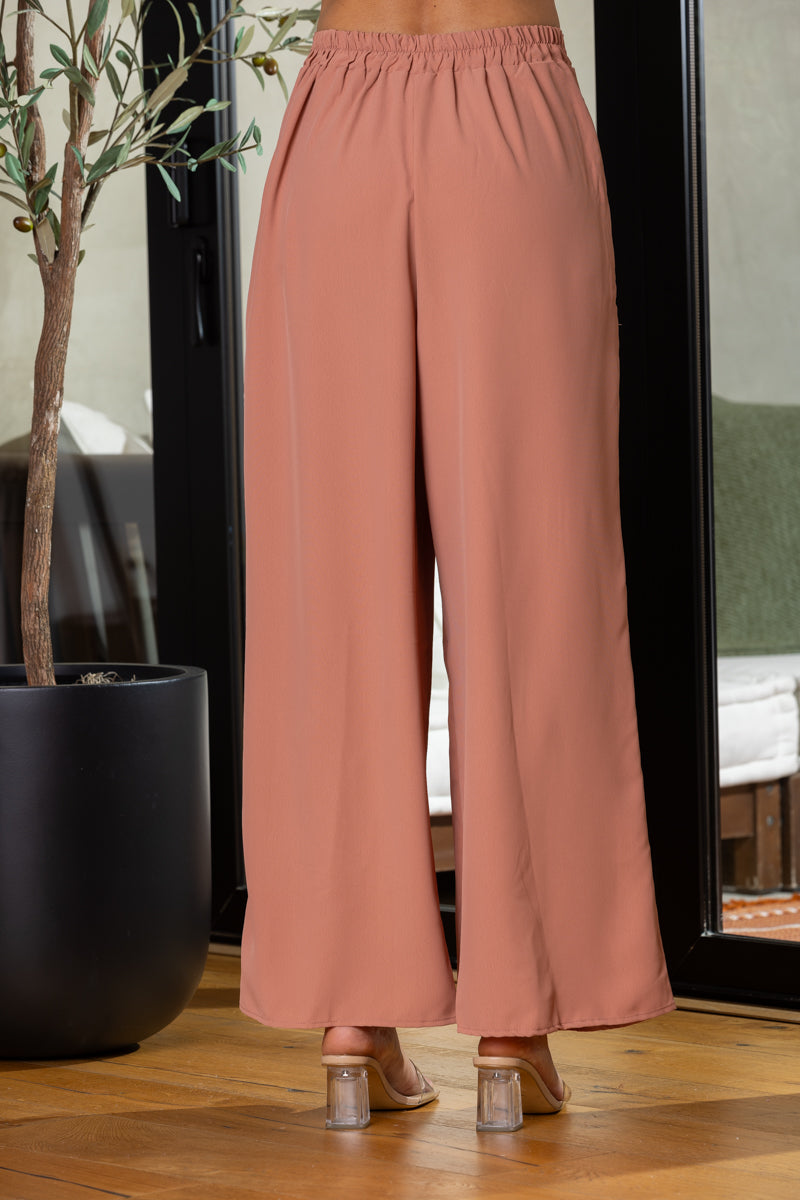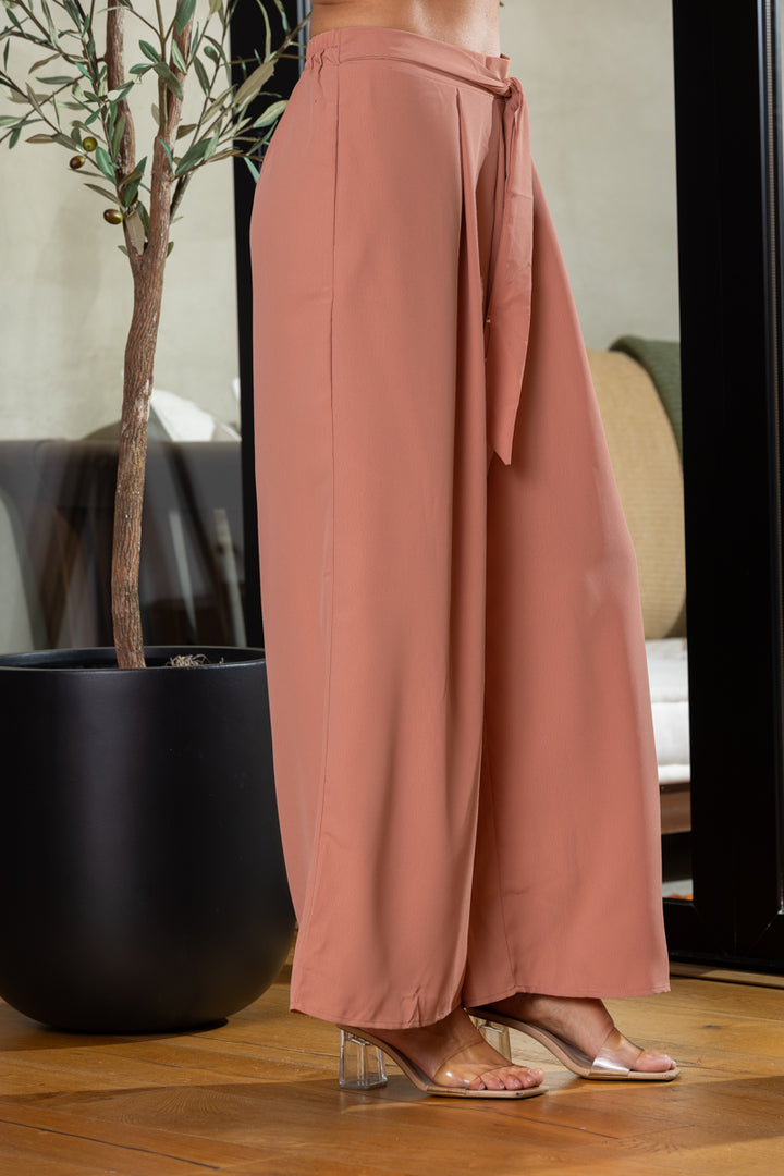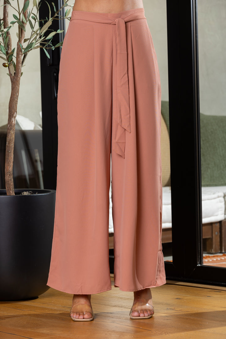 Introducing our MAUVE HIGH-WAISTED TIE KNOT WIDE LEG PANTS! Elevate your style with these fashionable pants that feature a high waist for a flattering fit and a tie knot for added detail. The wide legs offer a comfortable and chic look, perfect for any occasion. Upgrade your wardrobe today and feel confident and stylish!