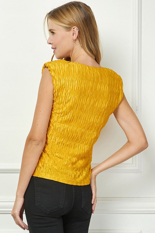 MUSTARD V-NECK SLEEVELESS PAD TEXTURED TOP AVT51101W