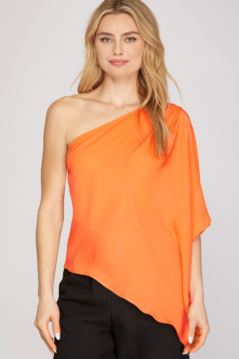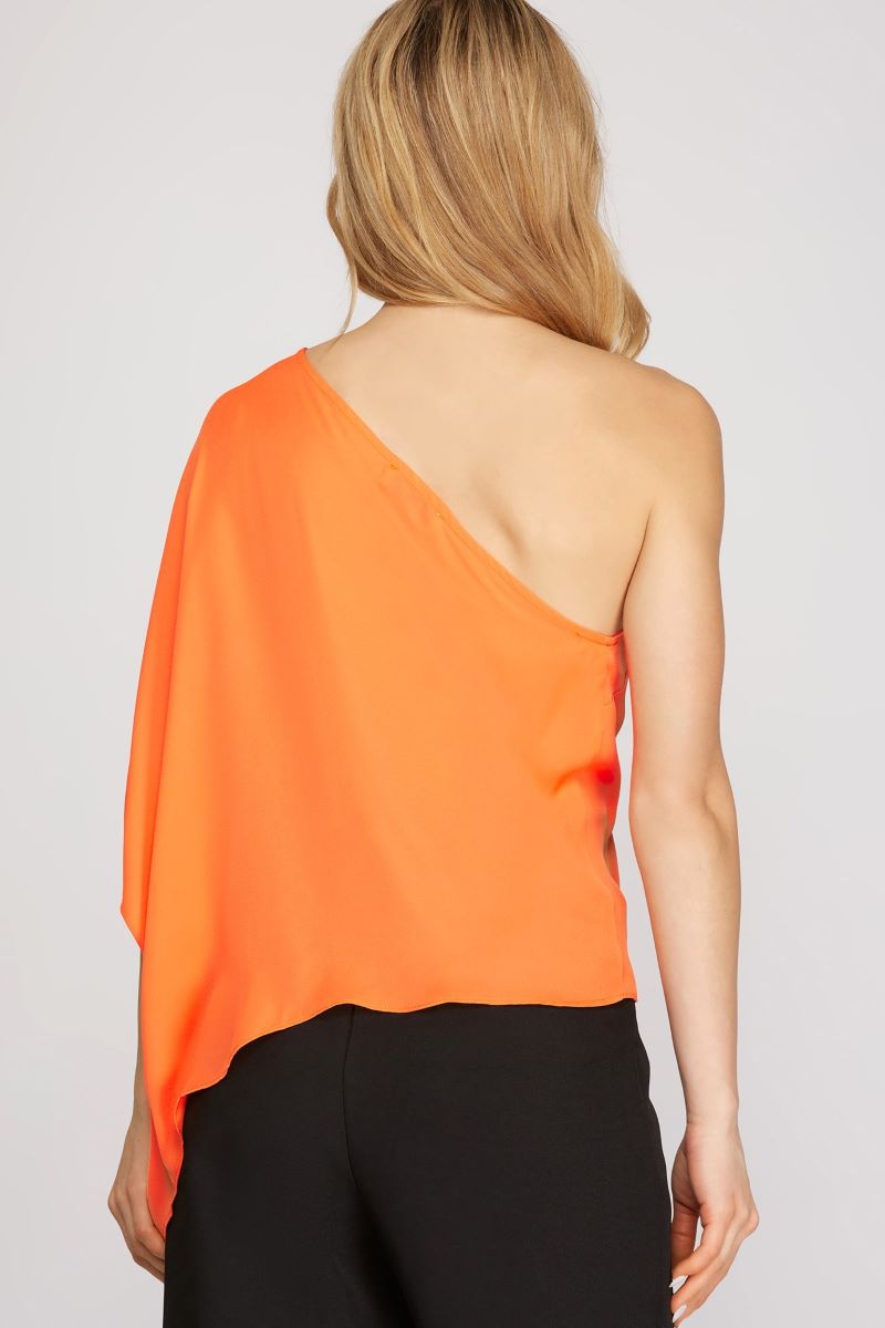 ORANGE ONE SHOULDER WITH PLEATS TOP