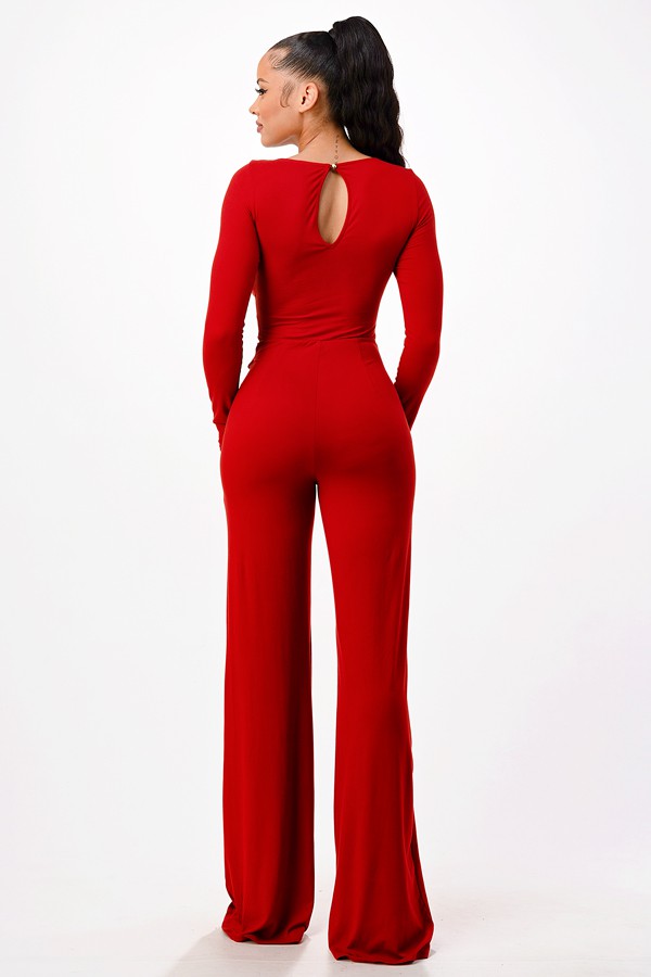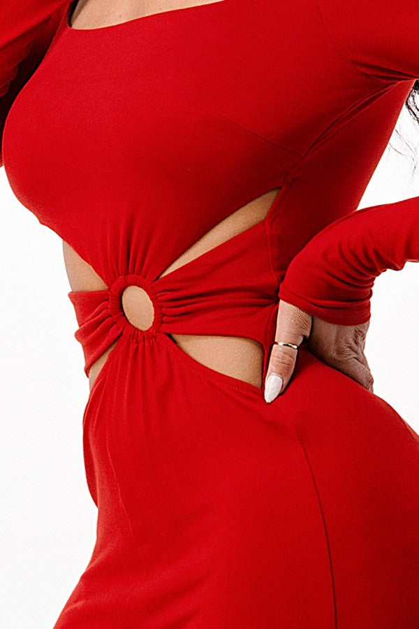 Be ready to slay in this RUST SQUARE NECK JUMPSUIT! With its long sleeves and cutout waist, this jumpsuit adds a sassy and edgy touch to your wardrobe. Perfect for a night out or a fun party, this jumpsuit will make you stand out most stylishly!