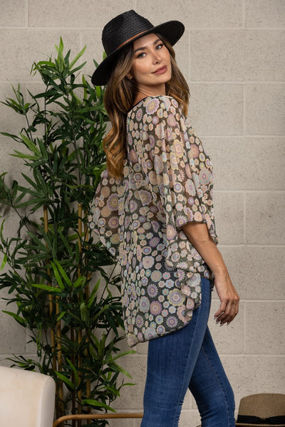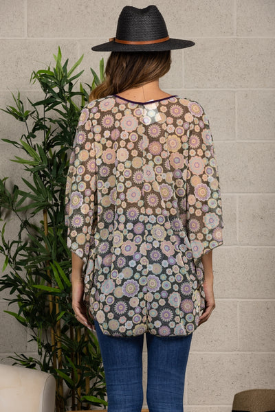 Effortlessly elevate your beach look with our Purple Floral Print Silhouette Cover-Up T7300. The stunning purple floral print adds a touch of femininity to the versatile silhouette, perfect for effortlessly transitioning from beach to boardwalk. Exude confidence and style with this must-have cover-up!