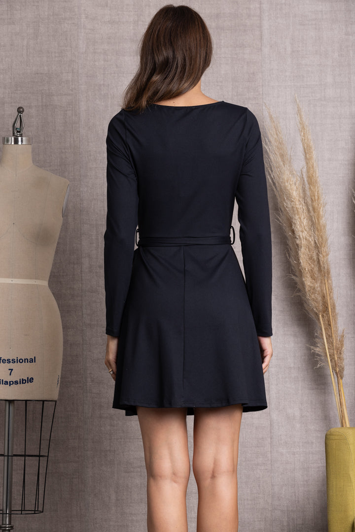 Look chic and stylish in this sleek black mini-dress! Featuring a square neckline, stretchy knit fabric, and flattering waist sash, your all-day comfort and effortless style will be on point. Pick up this fashionable frock for your next event! (2 S - 2 M - 2 L)