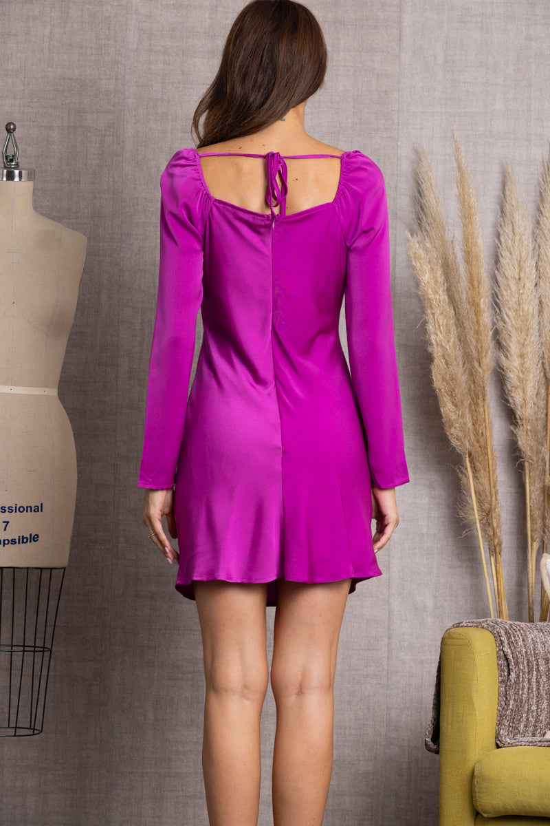 MAGENTA PLUNGING NECK LONG SLEEVES MINI DRESS-SY2522