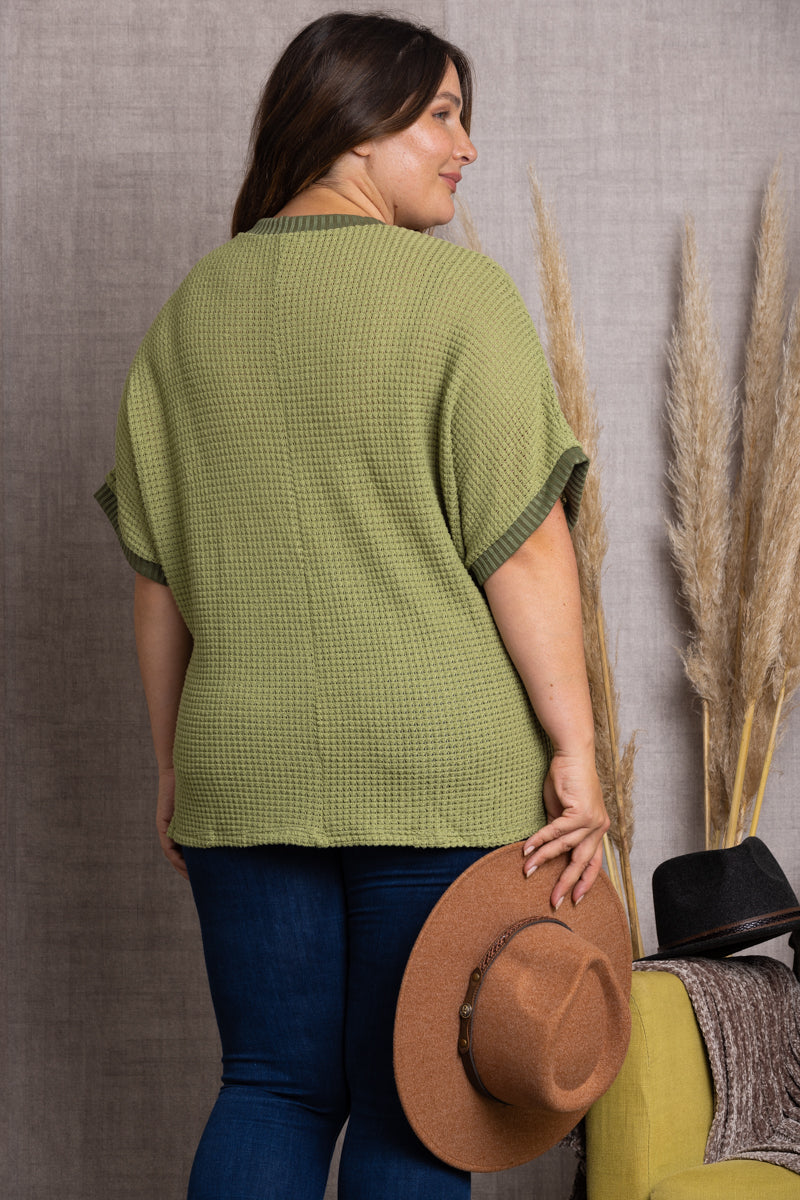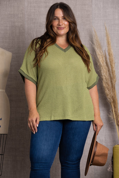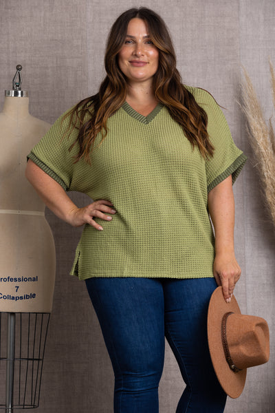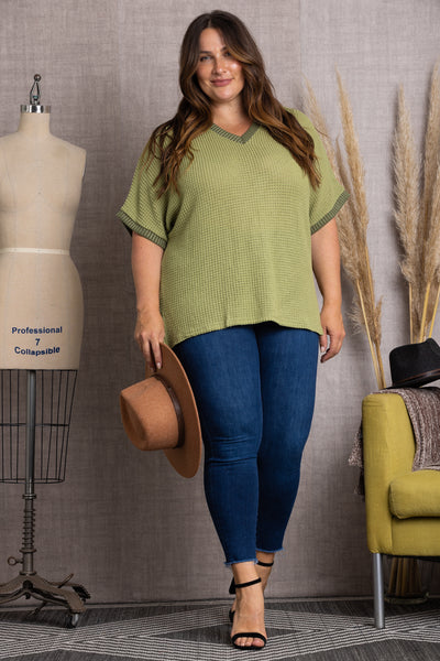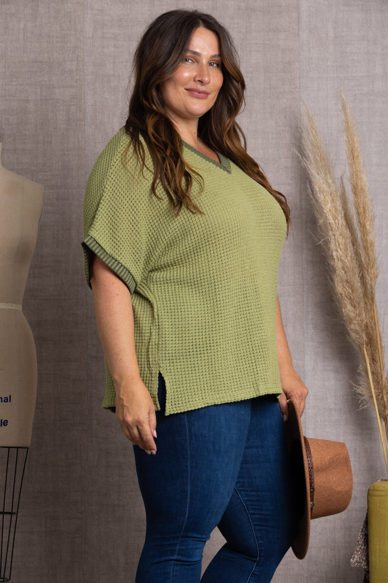 Make a statement in this OLIVE V-NECK DOLMAN SHORT SLEEVES PLUS SIZE KNIT TOP. Perfect for any occasion, it's designed with a V-neck, Dolman short sleeves and a knit fabric that's sure to make you look and feel oh-so-summer-ready. Flaunt your style and never look back!