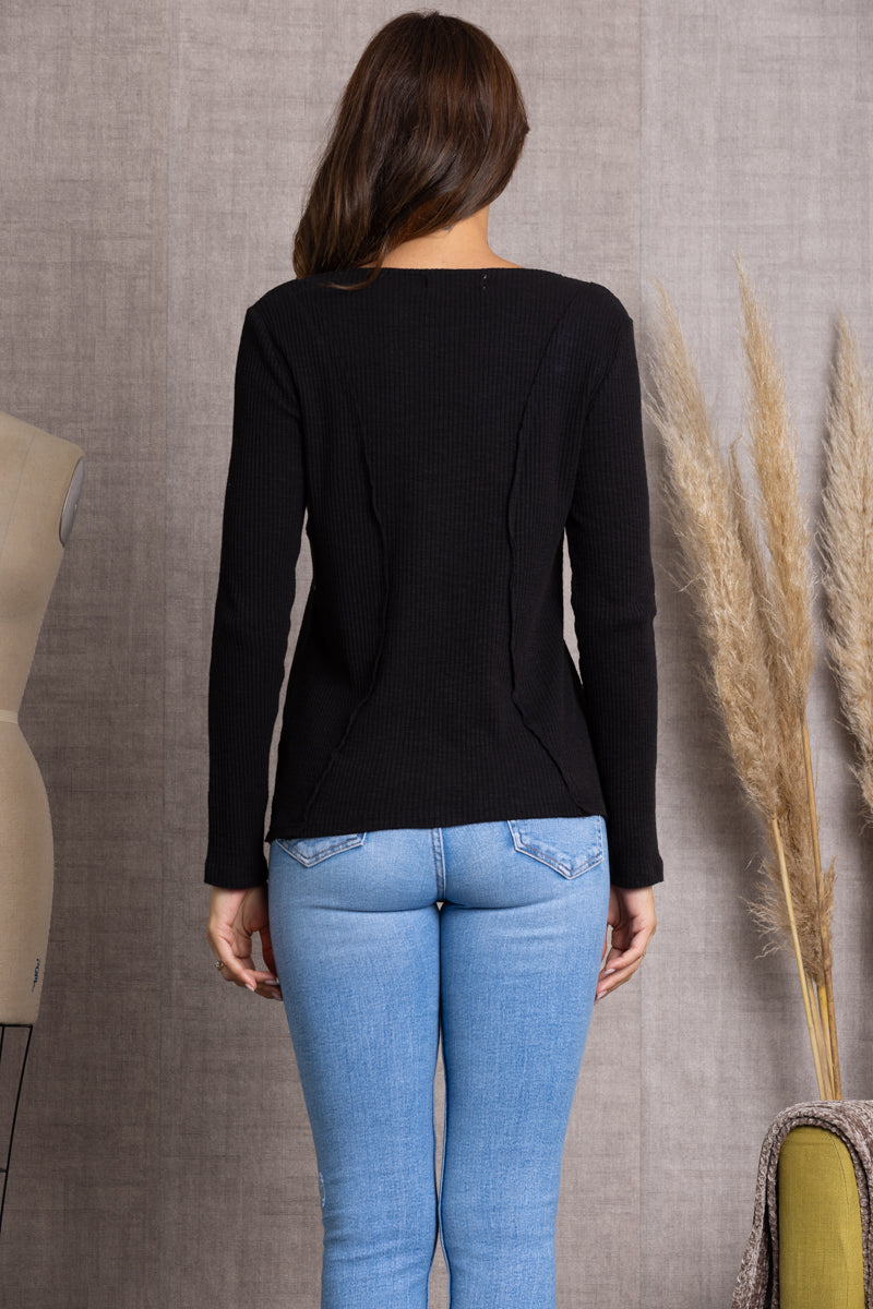 Achieve laid-back perfection in our TAT368-RAVEN BLACK RIBBED KNIT BUTTON DOWN LONG SLEEVE TOP. This ribbed knit piece is essential throughout the seasons, with a perfect blend of comfort and style, you'll always be dressed to impress!
