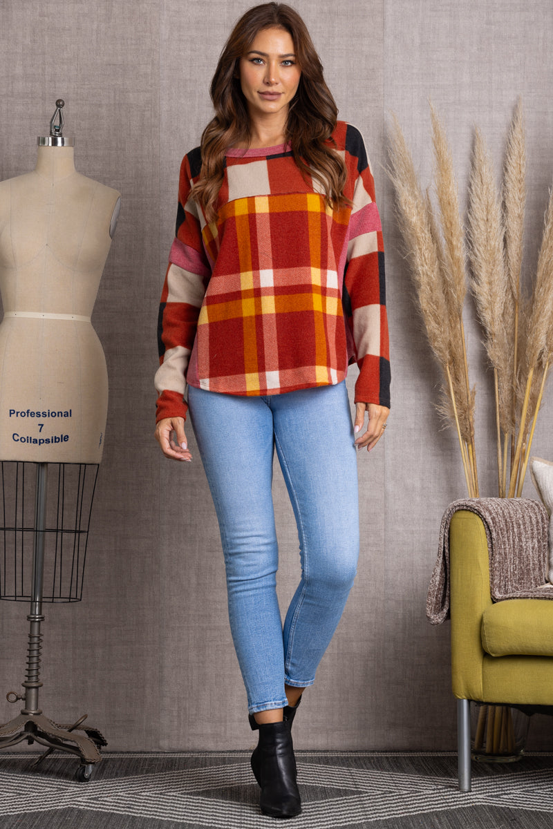 Ready for the cold season? Our TJ10939PA-RUST MULTICOLOR PLAID LONG SLEEVES SWEATER is the perfect choice for cozying up on a chilly day. The rust-colored multicolor plaid pattern is on-trend and provides a stylish look. Enjoy warmth and comfort with this soft and cozy sweater. Get it now!