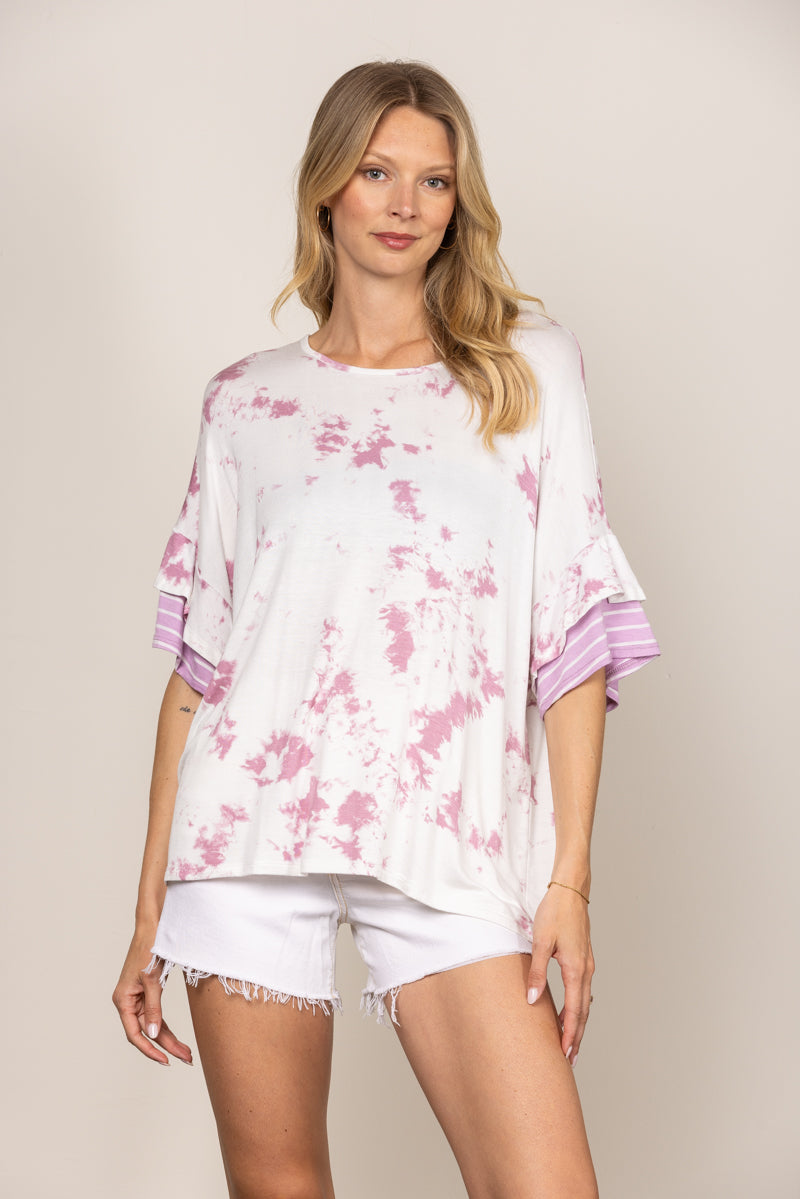 Elevate your style with our WHITE ROUND NECK RUFFLE DOLMAN SLEEVES CONTRAST TOP! Featuring a round neck and stunning ruffle detailing, this top adds a touch of elegance to any outfit. The dolman sleeves provide a comfortable and relaxed fit, while the contrasting color adds a pop of personality. Stand out from the crowd with this must-have piece!